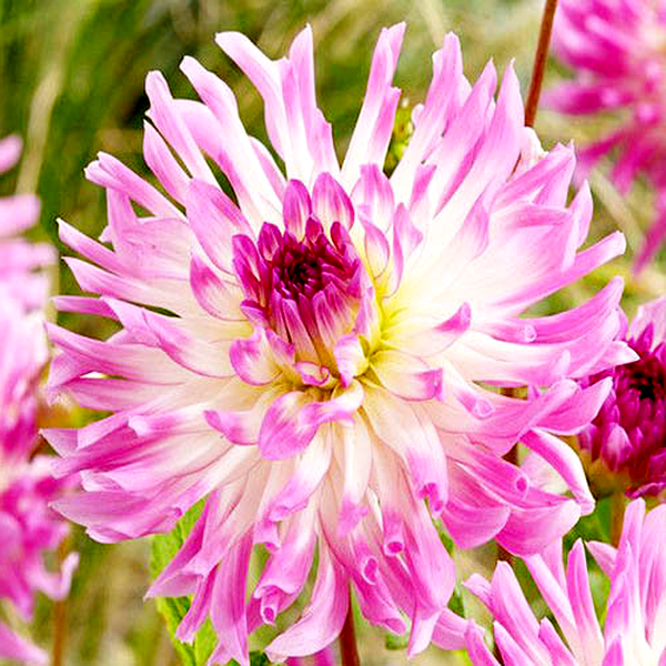 Dahlia is a genus of bushy, tuberous perennial plants native to Mexico and Central America. These popular garden flowers are prized for their spectacular blooms, which come in an extraordinary range of colors, sizes, and forms. Dahlia flowers can be as small as a coin or as large as dinner plates, with some varieties reaching over 12 inches across.